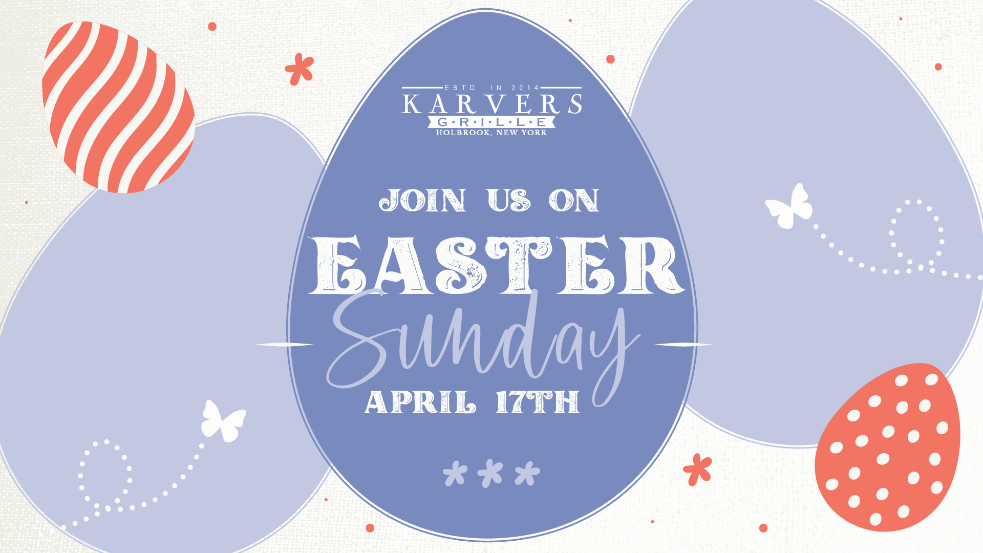 Spend Easter at Karvers! We will be serving a Special Easter Menu all day. Reservations are strongly recommended! View menu.